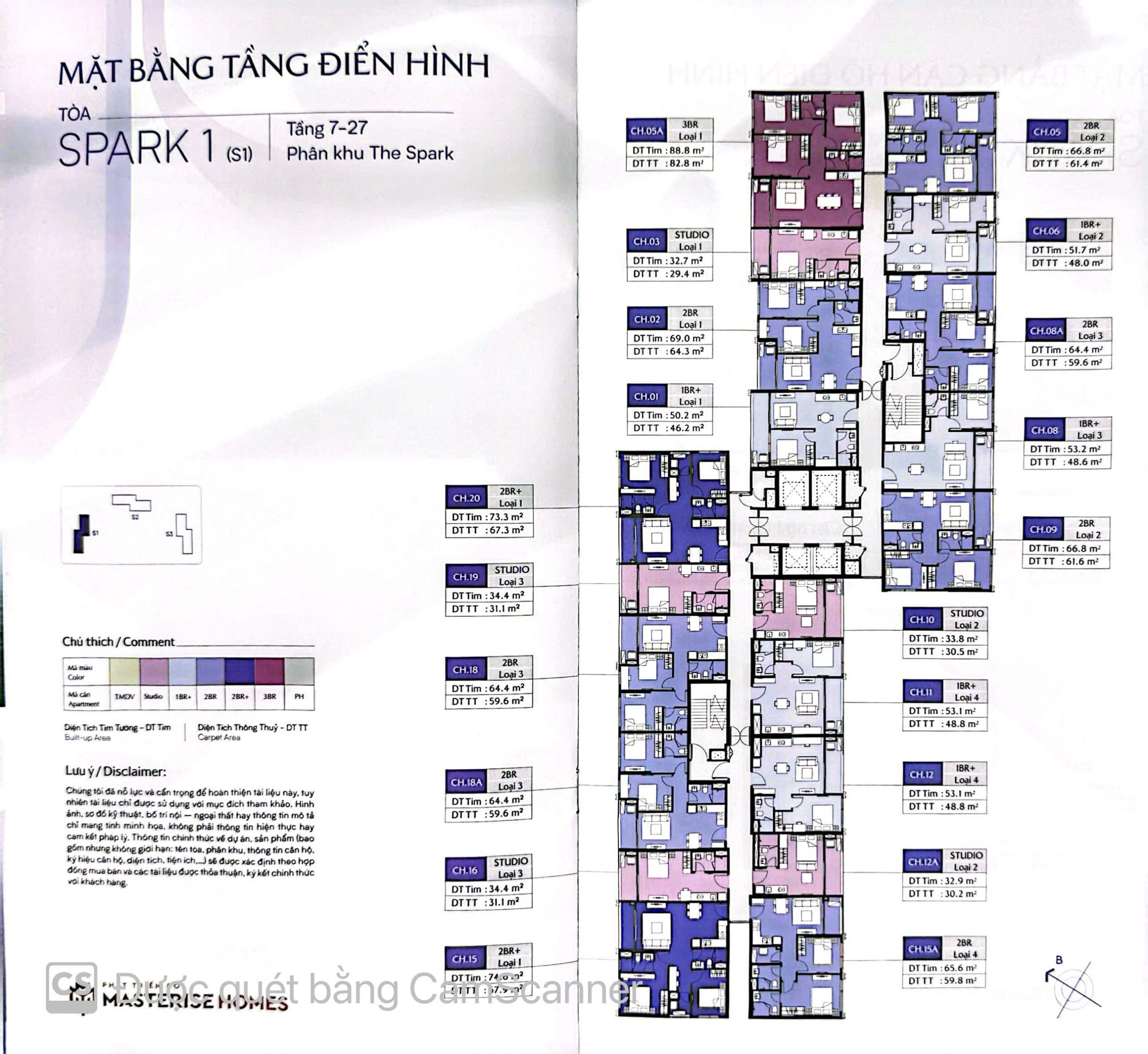 | 1BR+ | 50.2 – 53.4 m² | 46.1 – 49.0 m² | 3.33 tỷ | 3.85 tỷ |