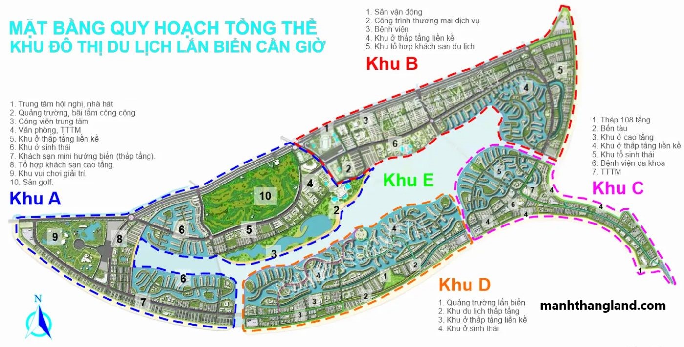 • Phân khu A – The Haven Bay (953ha): Trung tâm vui chơi – giải trí – nghỉ dưỡng đẳng cấp với các công viên chủ đề, sân golf quốc tế, khu ở (liên kế, biệt thự, chung cư), cùng chuỗi thương mại, khách sạn và văn phòng. Dân số dự kiến: ~59.000 người.