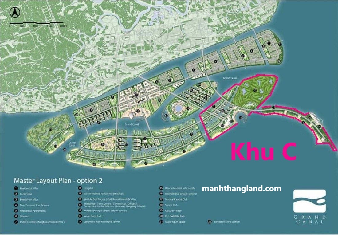 • Phân khu C – The Paradise (318ha): Định vị là khu vực tài chính – thương mại và du lịch cao cấp với cảng biển, văn phòng, biệt thự ven biển và căn hộ cao tầng. Dân số dự kiến: ~41.300 người.